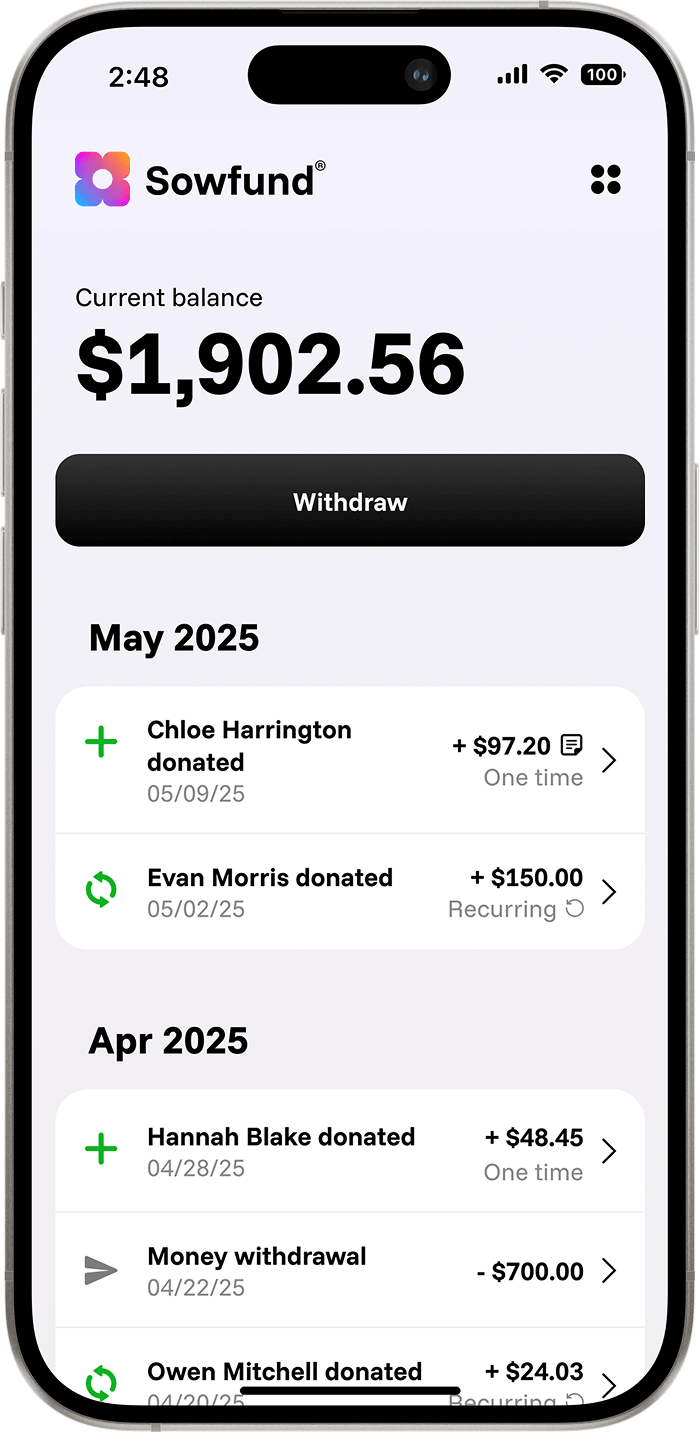 Create your profile with Sowfund and start collecting donations right away through your page.