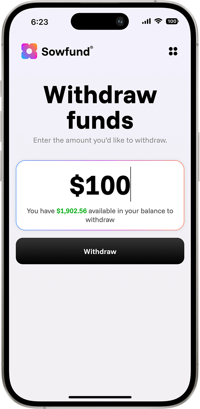 Withdraw part or all of your funds from Sowfund whenever you want.